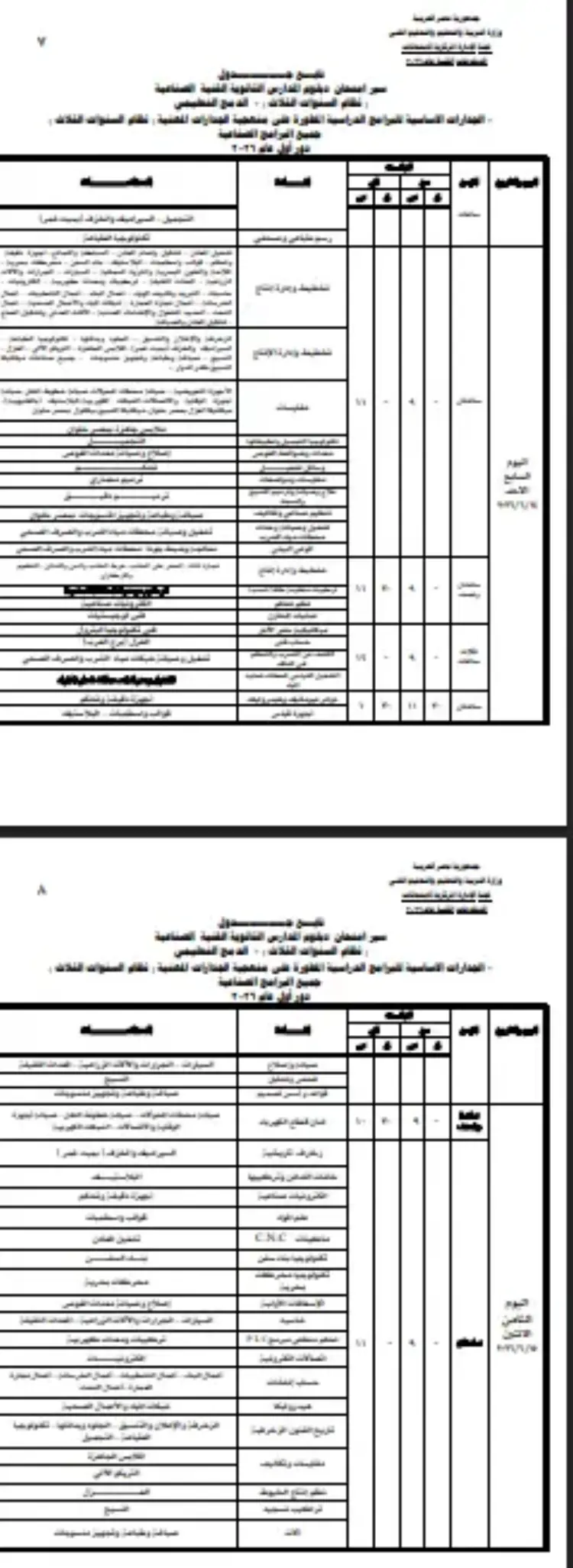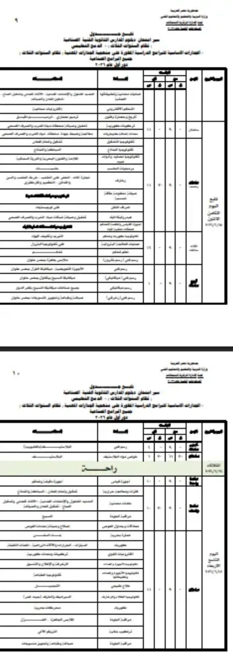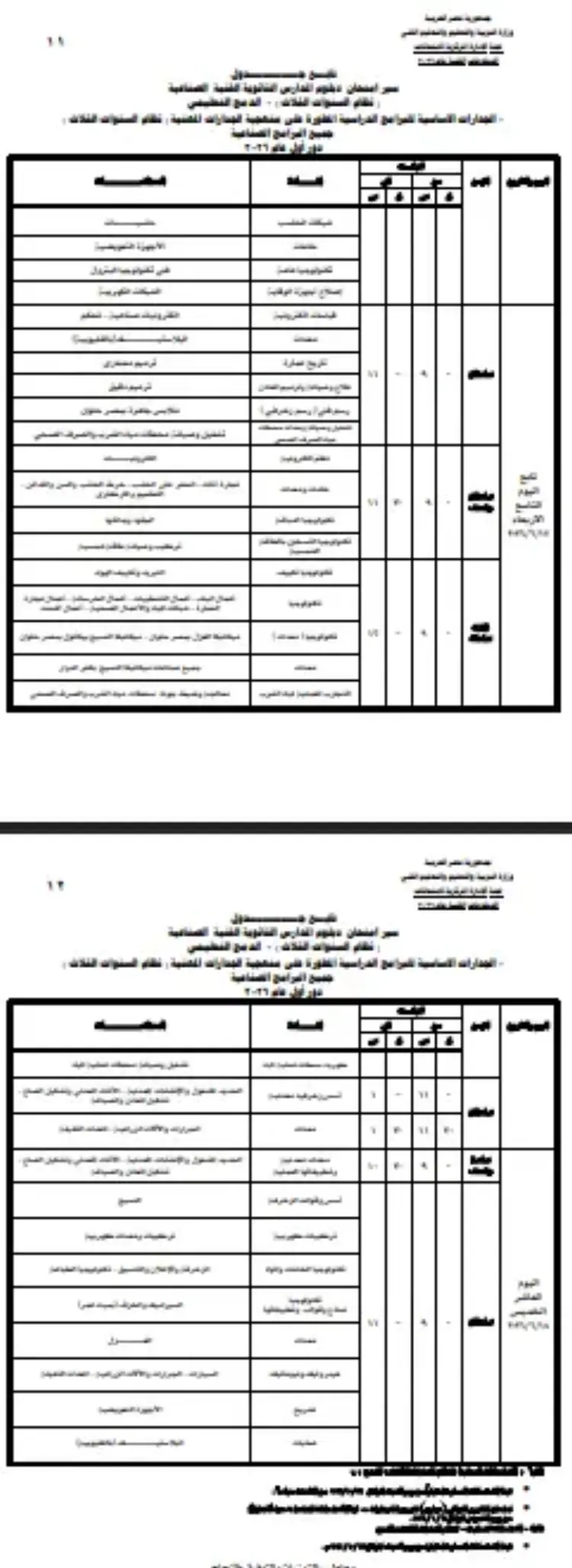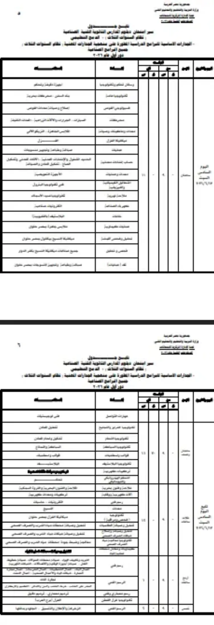 جدول سير امتحان دبلوم المدارس الثانوية الفنية الصناعية (الدمج والجدارات) 2026