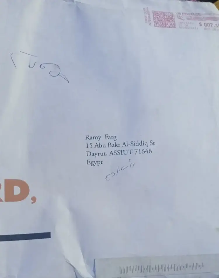 وأوضح أحد العاملين في البريد عن وصول الخطاب إلى مكتب بريد ديروط، كاشفا أن المراسلة جاءت من إحدى الكليات الأمريكية، وتتضمن قبول شاب يدعى «رامي فرج» ضمن منحة المؤسسين، إلى جانب عرض وظيفي براتب مرتفع.