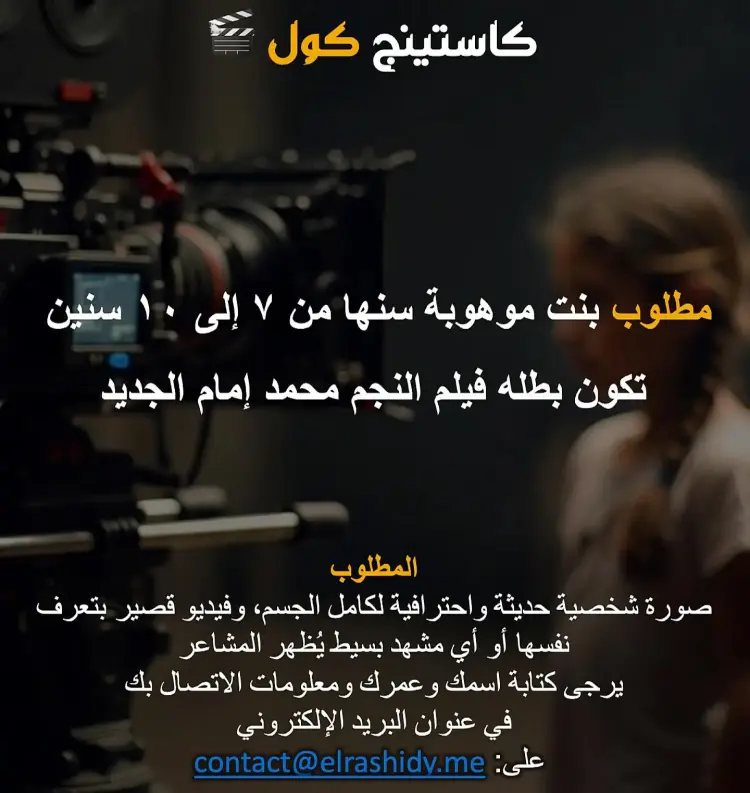 وأكد، الإعلان أن الاختيار سيعتمد بشكل أساسي على الأداء التمثيلي الطبيعي والقدرة على الإقناع، وهو ما يعكس توجه محمد إمام نحو تقديم عمل يعتمد على عنصر الصدق الفني، خاصة مع تصاعد المنافسة في سوق السينما واعتماد الجمهور على معايير أعلى في تقييم الأعمال.