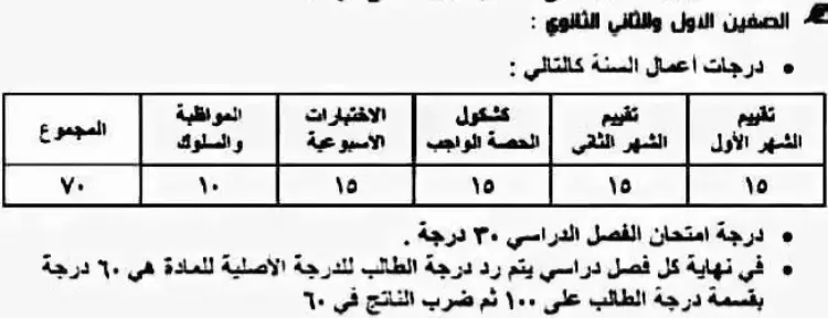 توزيع درجات أعمال السنة أولى وتانية ثانوي الترم الثاني