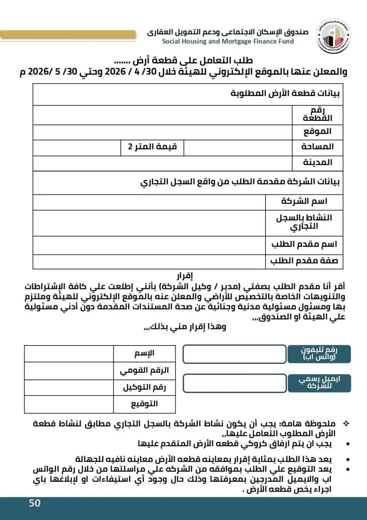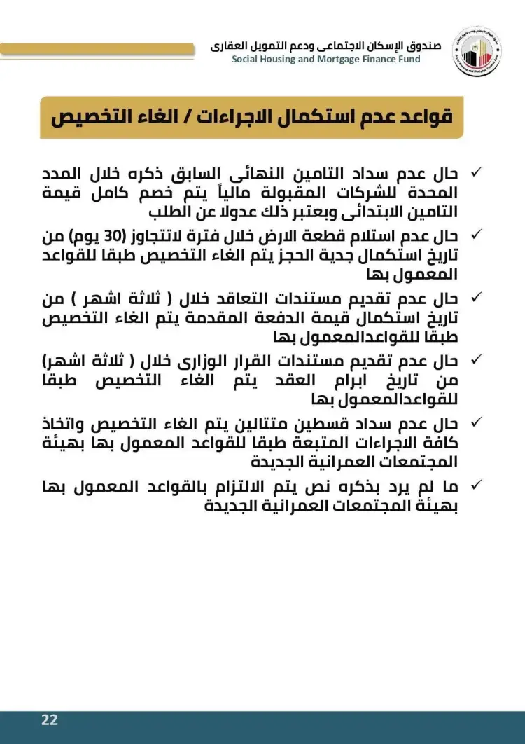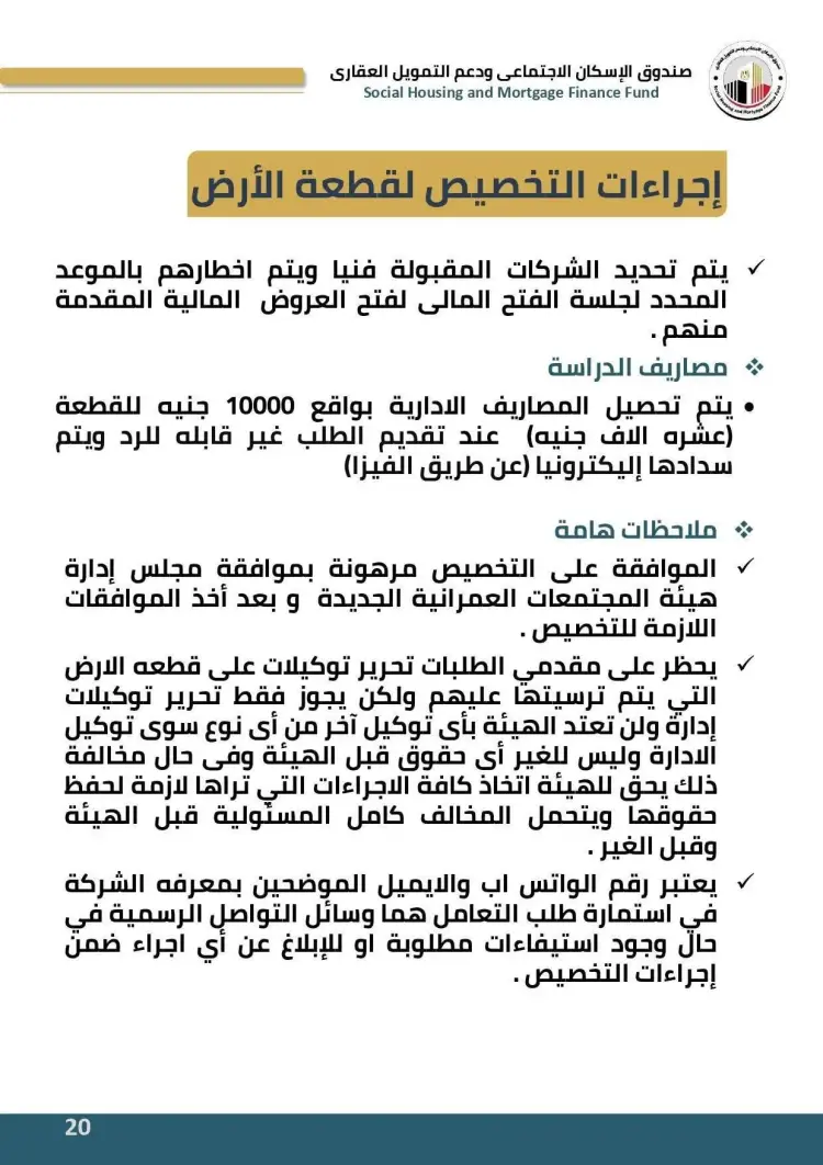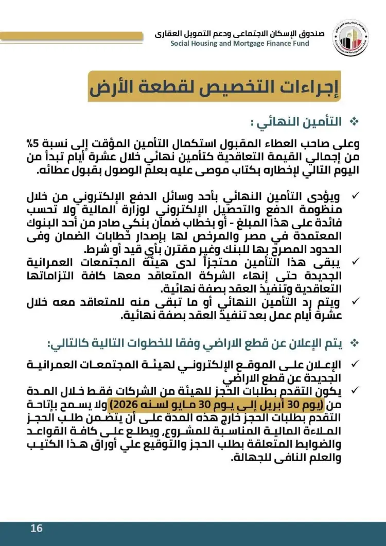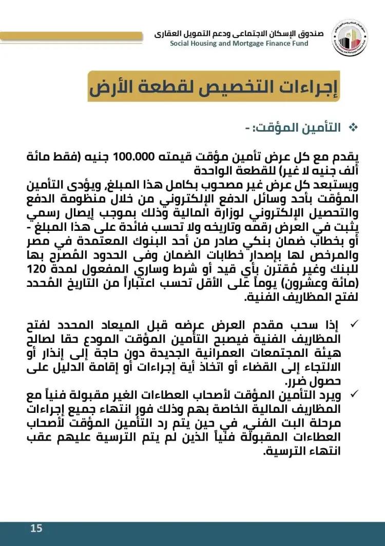 ويجب على المتقدم سداد مبلغ جدية الحجز والمصروفات الإدارية عبر مكاتب البريد المميكنة بكافة المحافظات، ثم العودة للموقع لرفع إيصال السداد واستكمال البيانات المطلوبة لضمان صحة التسجيل في الإعلان الجديد.