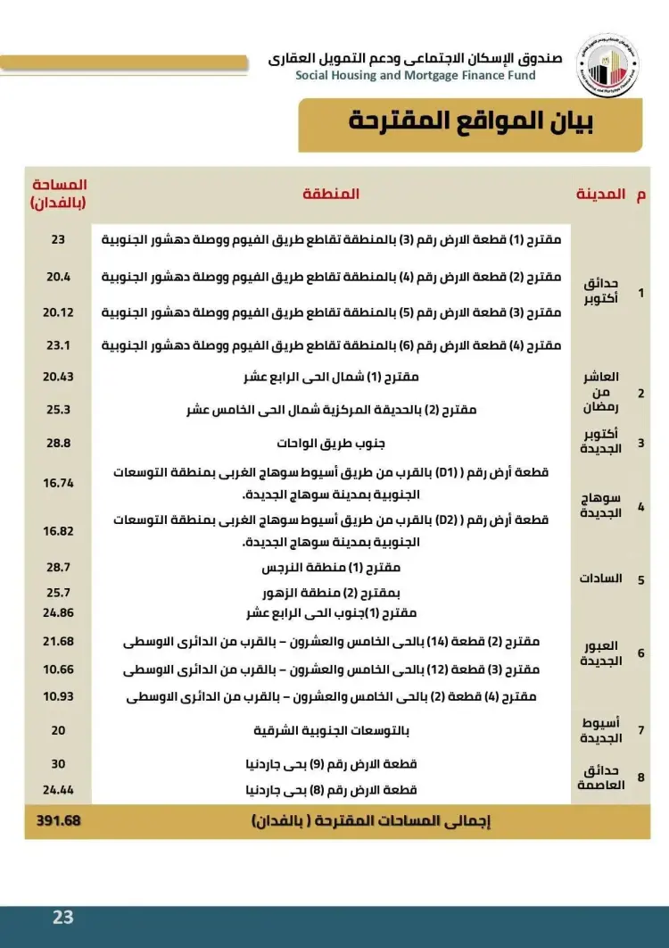 تبدأ وزارة الإسكان والمرافق والمجتمعات العمرانية، ممثلة في صندوق الإسكان الاجتماعي، طرح وحدات سكنية جديدة ضمن مبادرة سكن لكل المصريين.