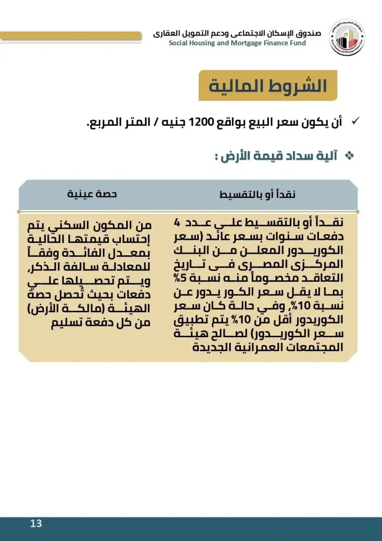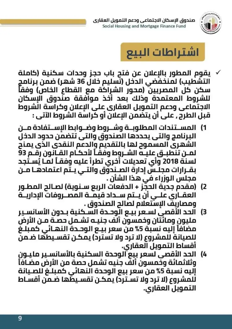 ويهدف هذا الطرح لتلبية احتياجات المواطنين الراغبين في الحصول على وحدات مدعومة، مع توفير تسهيلات كبيرة في السداد وأنظمة تمويل عقاري ميسرة تمتد لسنوات طويلة بما يتناسب مع القدرات المادية للمستهدفين.