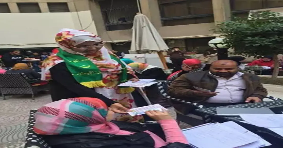تجولت الطالبة الموريتانية «ام احويلي» لتعريف الطلاب و الجاليات المختلفة، ببلدها، ووزعت بطاقات بها معلومات عن وطنها.