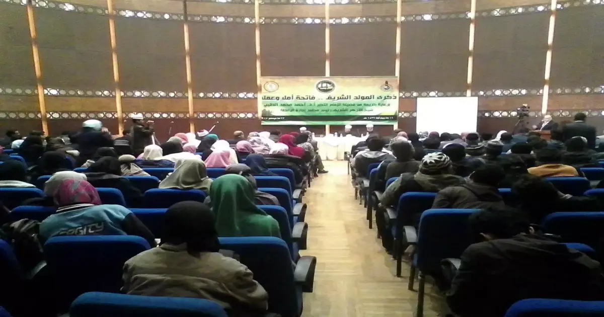 نظمت الرابطة العالمية لخريجي الأزهر الشريف حفلا بمناسبة المولد النبوي تحت عنوان «ذكري المولد الشريف.. فاتحة أمل وعمل»، اليوم الثلاثاء، في قاعة الشيخ زايد، بفرع مدينة نصر بالقاهرة.