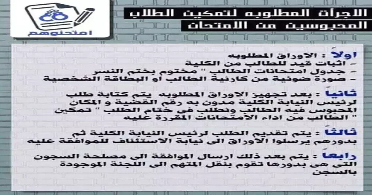 إجراءات تمكين الطلاب المحبوسين من أداء الامتحانات