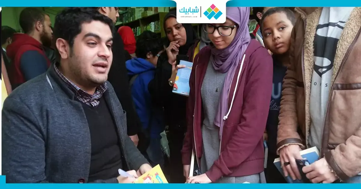 وسط عدد كبير من جمهوره الكاتب للحصول على توقيعه، عبر عن فرحتة العارمة بحضورهم، متمنيا أن يحقق كتابه مبيعات جيدة.