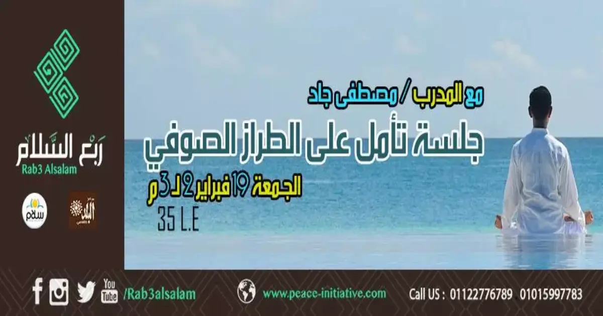 «رَبْع السلام» يقدم لكم جلسة تأمل على الطريقة الصوفية، لتعرف ما هو التأمل وأسراره وتأثيره عليك، وتتعلم كيف تمارس تأمل سليم في أي مكان. الجلسة بحضور المُدرب مصطفى جاد، مؤسس مبادرة سلام الدولية، وتشمل عدة فقرات هي: