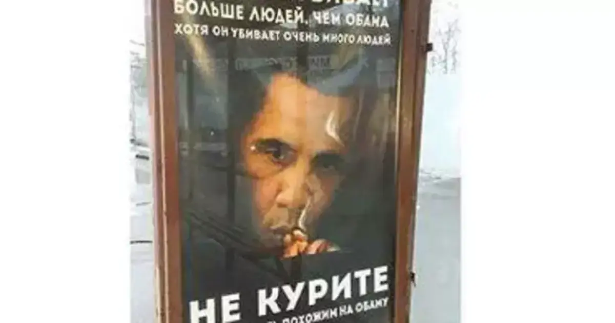 انتشرت في شوارع العاصمة الروسية موسكو، لوحات إعلانية تحذر من خطورة التدخين على صحة الإنسان، ونشرت وسائل الإعلام الروسية صورة الرئيس الأمريكي، باراك أوباما، التي تواجدت على الإعلان.