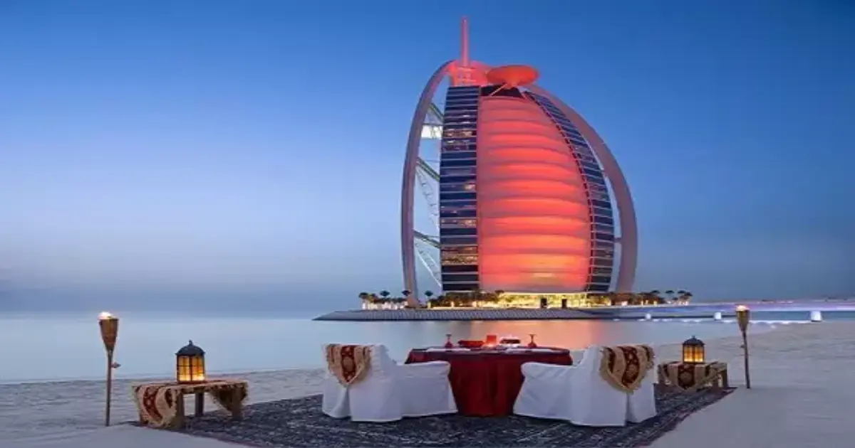 فى حى الجُميرا بمدينة دبى يقف شامخًا، يشق عنان السماء كناطحات السحاب مُتخذًا هيئة "شراع" مركب يبحر فى الفخامة والثراء.. إنه فندق «برج العرب» بالإمارات والذى يعد من أشهر وأفخم الفنادق فى العالم كُله حيث تم منحه جودة "السبع نجوم" والتى نادرًا ما يُحصل عليها.