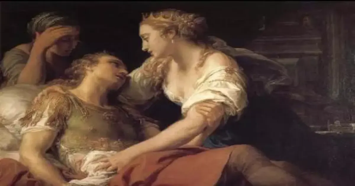 5- باريس وهيلين ذُكرت هذه القصة عن هيلين من طروادة وحرب طروادة في الإلياذة - ملحمة شعرية - للكاتب اليوناني الشهير هوميروس، وهي قصة امتزج فيها الواقع بالاسطورة. وتعتبر هيلين واحدة من أجمل الشخصيات النسائية في عصرها وكانت متزوجة من ملك إسبارطة مينيلوس، لكن باريس إبن ملك طروادة وقع في حبها وخطفها وعاد بها الى طروادة ليتزوجها.. وعندما علم زوجها أمر اليونانيين بتجميع جيشاً لإستعادة هيلين وتم تدمير طروادة وأُعيدت هيلين سالمة الى أسبارطة حيث عاشت بسعادة مع مينيلوس بقية حياتها.