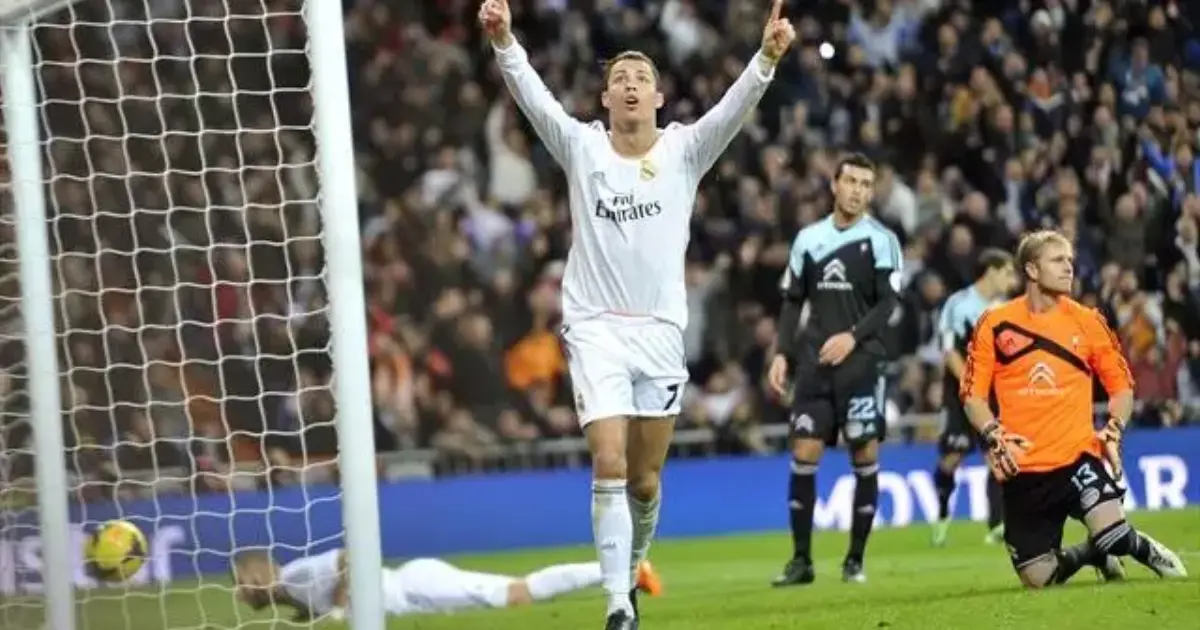 وأحرز بيبي الهدف الأول في الدقيقة 41، وكريستيانو رونالدو سوبر هاتريك في الدقائق 50 و 58 و 64 و 76)، ليعتلي صدارة الهدافين برصيد 27 هدفا، وخيسي رودريغيز في الدقيقة77، والعائد من الإصابة غاريث بايل 81، أما هدف سلتا فيجو الوحيد فجاء عبر إياغو آسباس في الدقيقة 62.