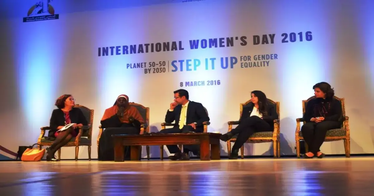 حضر ممثلى نموذج محاكاة هيئة الأمم المتحدة للمرأة بجامعة القاهرة، احتفالية اليوم العالمى للمرأة بمسرح الجمهورية، والذى يقام تحت شعار "الإعداد للمساواة بين الجنسين لمناصفة الكوكب بحلول 2030".