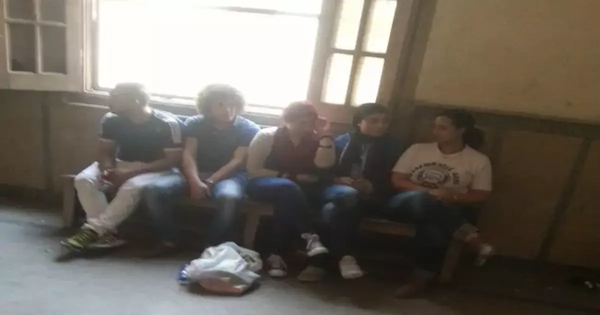 وظهر الشباب في الصورة بجوار بعضهم جالسين على مقعد خشبي أمام النيابة، في انتظار جلسة التحقيق معهم بعد القبض عليهم من ميدان طلعت لاحتجاجهم علي قرار الحكومة بالتنازل عن جزيرتي تيران وصنافير إلى للسعودية.