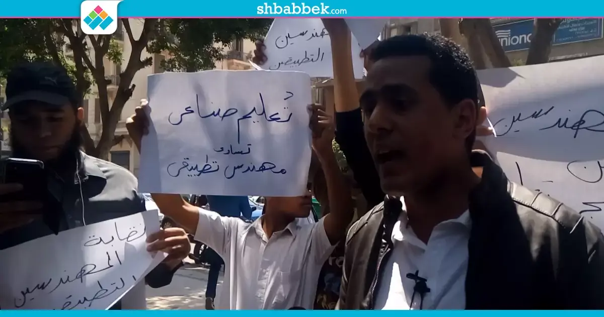 طلاب «التعليم الصناعي» يتظاهرون أمام التعليم العالي (صور)