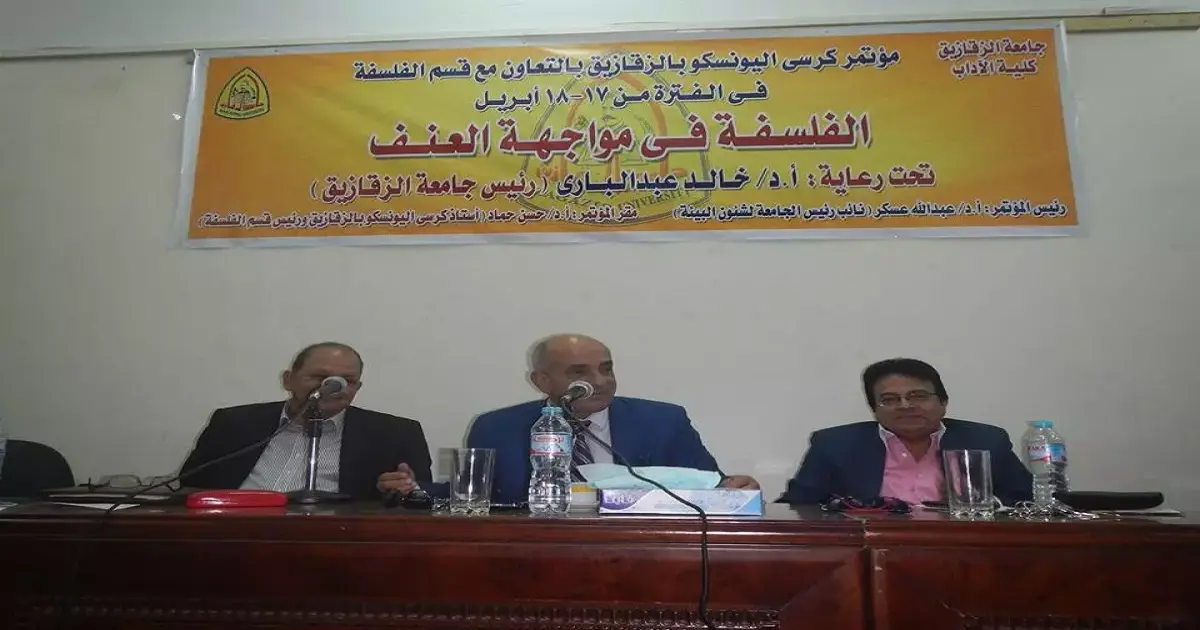 انطلقت فاعليات المؤتمر السنوي لكرسي اليونسكو للفلسفة، اليوم الأحد، بكلية الآداب جامعة الزقازيق تحت عنوان «الفلسفة في مواجهة العنف»، برعاية رئيس الجامعة الدكتور خالد عبد الباري، ونائب رئيس الجامعة ورئيس المؤتمر، الدكتور عبدالله عسكر.