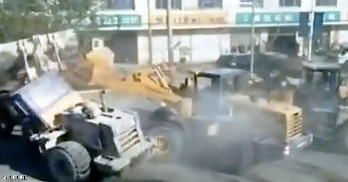 شاهد.. عراك بـ«الجرافات» يثير الرعب في الصين