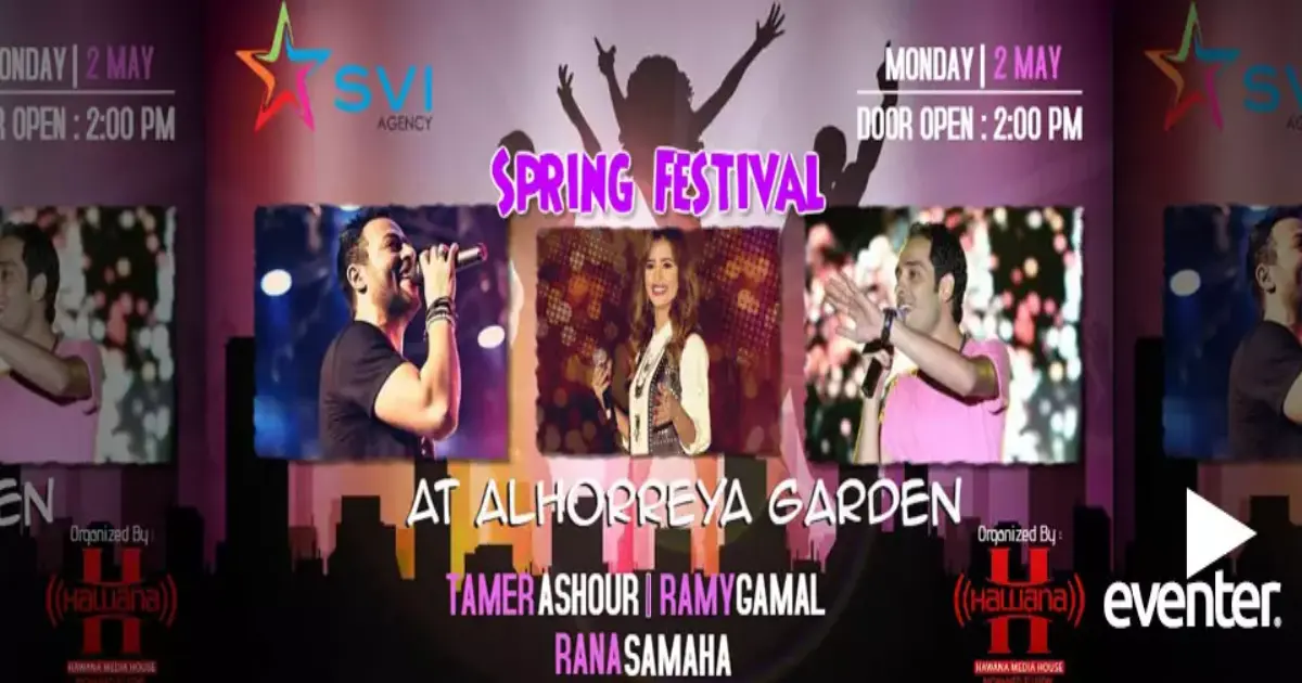 تنظم شركة «Eventer» السياحية حفل غنائي في الرابعة من عصر الاتنين 2 مايو المقبل، بمناسبة عيد شم النسيم.