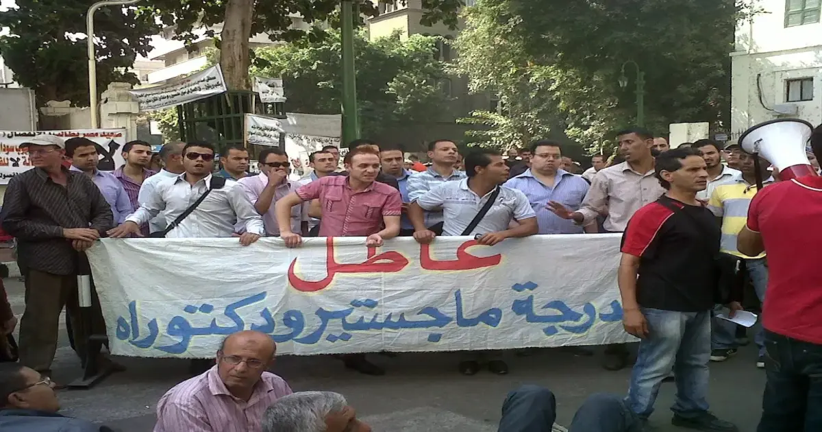 حاملو الماجستير والدكتوراة يعتصمون أمام مجلس الوزراء
