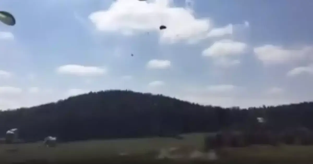 وجاء الحادث بعد وقوع خطأ ما في عملية الانزال التي تضمنت اسقاط مركبات ثقيله بالمظلات، وتداول جمهور مواقع التواصل الاجتماعي فيديو يظهر الحادث.
