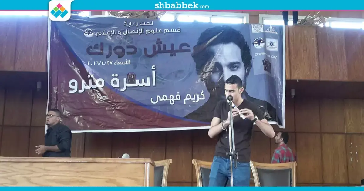 استضافت أسرة «مترو» بكلية الآداب جامعة عين شمس، اليوم الأربعاء، نجم برنامج «آراب جوت تالنت»، مدحت ممدوح، والفنان كريم فهمي، في ندوة «عيش دورك» بمدرج علوي التابع للكلية.