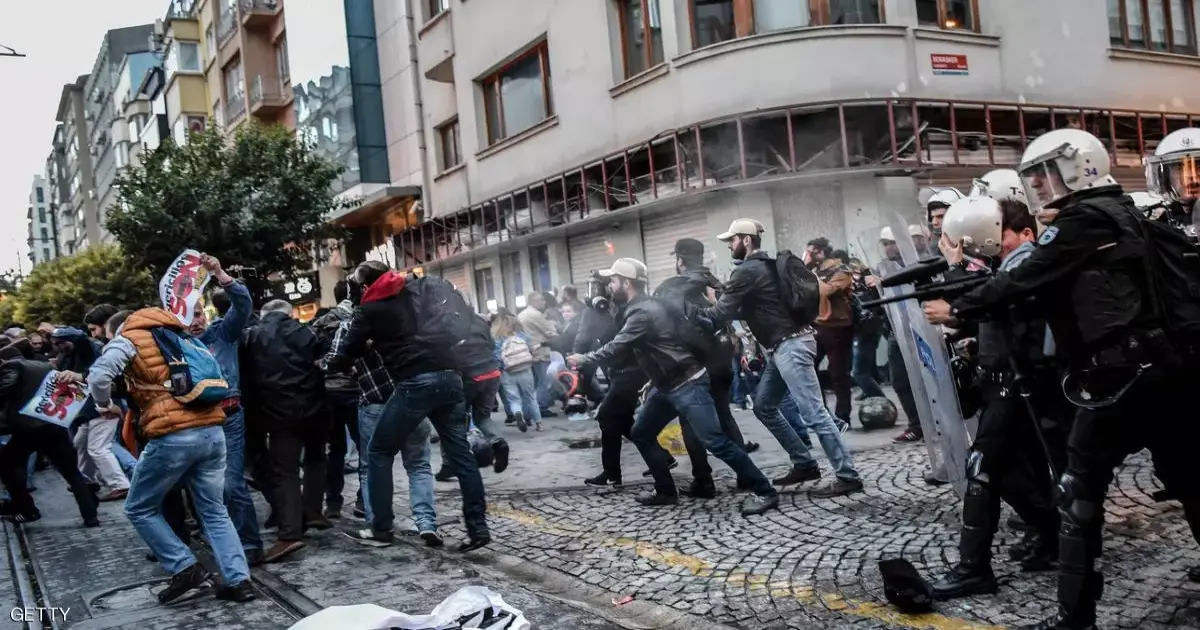 اشتبكت الشرطة التركية مع متظاهرين، الأحد، حاولوا اقتحام ميدان تقسيم وسط إسطنبول للاحتفال بعيد العمال، وقتل شرطي وأصيب آخرون في انفجار سيارة مفخخة استهدفت المبنى الرئيسي لشرطة غازي عنتاب.