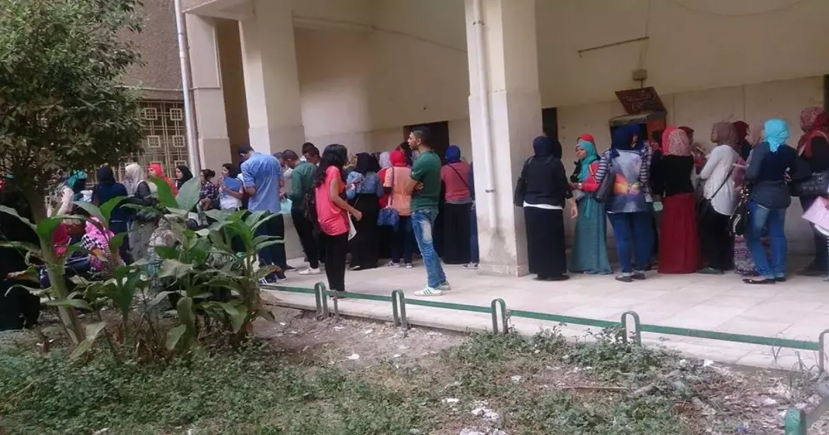 صور| تزاحم طلاب آداب حلوان لتقديم المرحلة الثالثة بالكلية