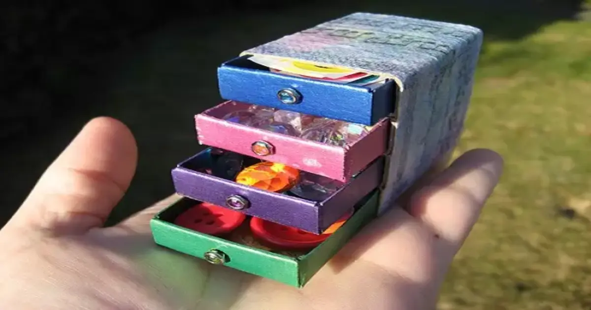 يمكن استغلال علب الكبريت الفارغة لصنع أشكال ديكورية من خلال خطوات سهلة وبسيطة، وذلك من خلال، جمع علب الكبريت، ثم إلصاق علب الكبريت فوق بعضها البعض لتكون على شكل هرمي أو برج أو بشكل متجاور، ثم تزيين العلب بأي من الخامات المتوفرة بالبيت من ألوان أو ورود وملصقات أو الورق المقوي أو قطع القماش الزائدة بالبيت مع أزرار ملونة لتعطي شكل جذاب، كما هو موضح بالصور.
