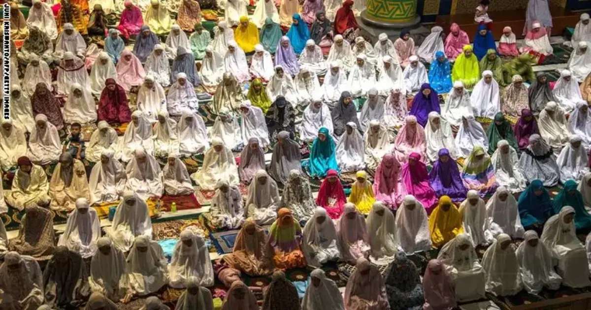 إندونيسيات يصلين مع بداية شهر رمضان في المسجد الأكبر في إندونيسيا