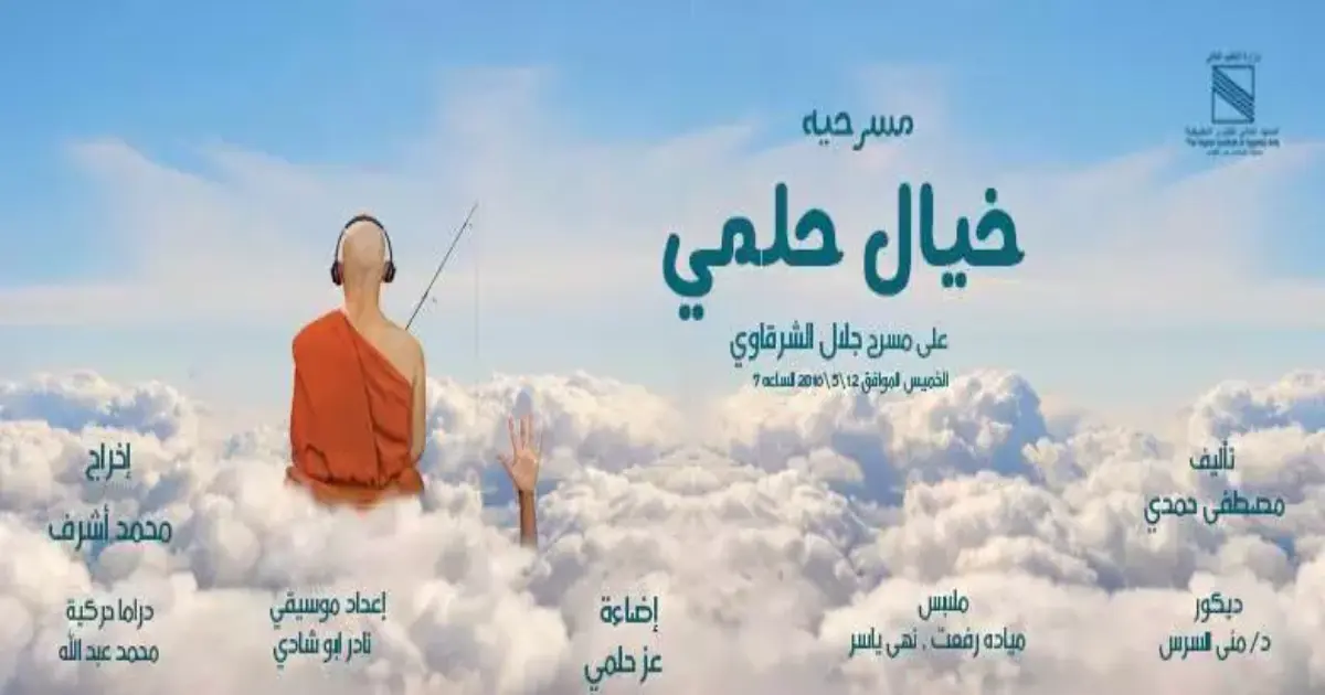 تعرض فرقة ورشة الساقية المسرحية في السابعة والنصف من مساء الثلاثاء، مسرحية «خيال حلمي» للمؤلف مصطفى حمدي والمخرج أحمد سيف، وذلك على مسرح قاعة الحكمة بساقية الصاوي.
