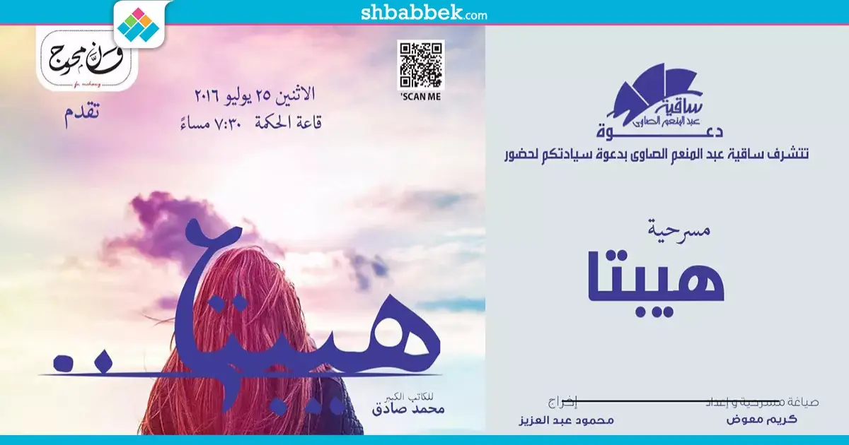تعرض ساقية الصاوي، في السابعة والنصف من مساء الاثنين، مسرحية «هيبتا»، وذلك بقاعة الحكمة.