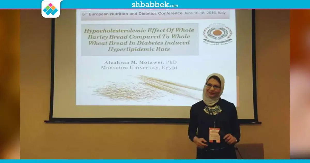 وخلال المؤتمر عرضت «مطاوع» نتائج هامة لبحث أجري في جامعة المنصورة عن فوائد خبز الشعير من حيث الوقاية والعلاج لمرضي السكر والقلب وارتفاع ضغط الدم.